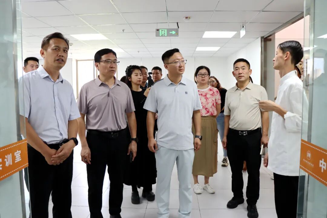 在整个考察过程中,钱玉兰校长全程与考察团领导保持深入交流,详细介绍了学校的办学规模、校园建设规划、办学特色及职业技能等级评价工作。考察团领导对学校的办学成果给予高度评价,认为我校在技能人才培养方面定位精准、特色鲜明,尤其是实训基地建设贴合产业需求、教学模式注重实践实效,为区域技能人才培养作出了积极贡献。