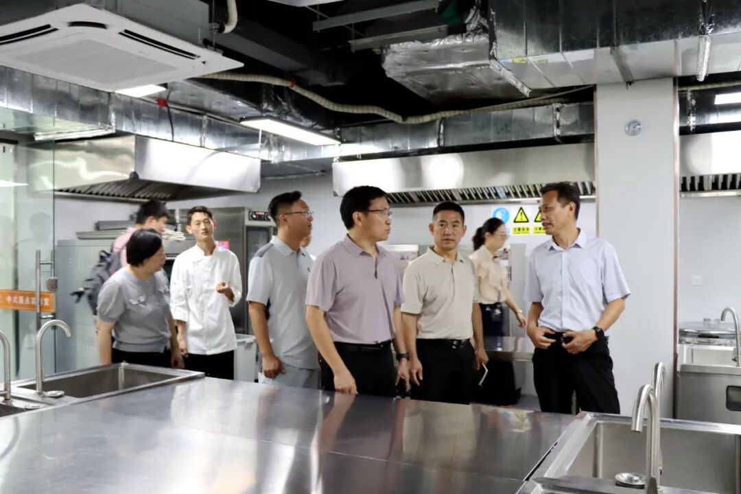 随后,考察团一行来到烹饪专业实训基地,该基地是学校特色专业实训场所,分为中式面点实训室、西式面点实训室、热菜实训室及餐饮服务实训室等功能区,整体按照星级酒店厨房标准建设。休闲观光事业系主任任艳霞首先介绍了烹饪专业的发展历程、师资力量及人才培养成果。实训室负责人丁峰带领考察团参观了各实训室,并对中式面点、西式面点实训室的使用情况及在实训室内承担的技能鉴定情况进行了讲解。考察团肯定了实训室设备、环境及实训安排,赞其为学生搭建优质技能提升平台。