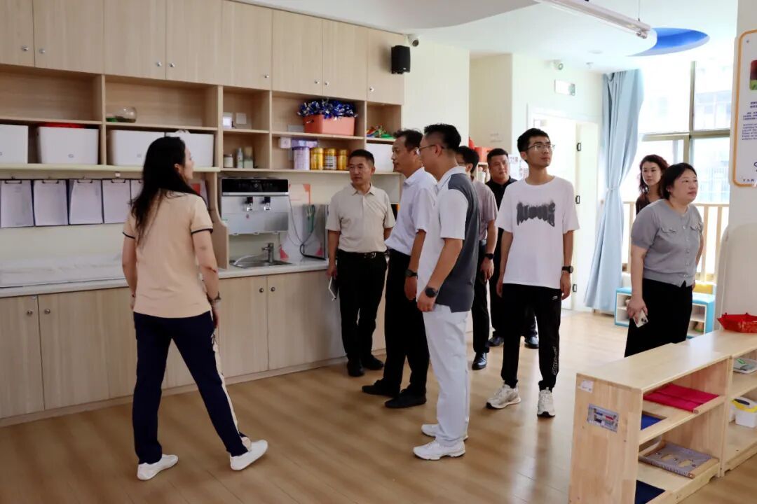 考察最后一站是幼儿教育专业实训基地,该基地是集教学、实训、社会服务于一体的综合性实践平台。幼儿教育与保健系主任陈巍重点介绍了相关专业的实践教学情况,学生在校期间需完成不少于 600 学时的实训任务;实训负责人丁珞筠详细讲解了实训基地的功能布局,包括幼儿模拟活动室、舞蹈室、美工室、育婴实训室等功能区域,可满足学生开展幼儿教学活动设计、游戏组织、保育技能训练等实训需求。炎黄托幼中心园长周绒则带领考察团参观了托幼中心的实际教学场景,领导们重点询问了托幼中心的办学规模、实习实训安排及职业技能等级评价等情况。
