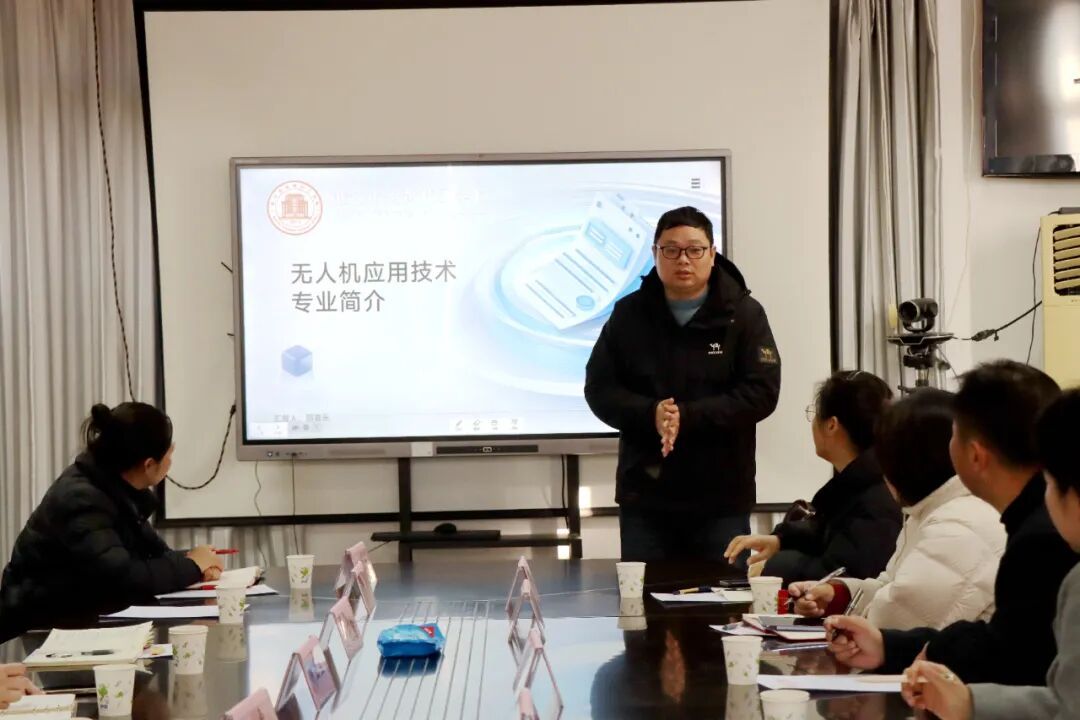 上午9时,在中山楼五楼会议室开展交流座谈。会上,校长钱玉兰首先代表学校对考察团的到来表示热烈欢迎。随后,休观系主任任艳霞、机电系机电技术教研室主任邵喜乐分别围绕专业培养方案、实训教学模式、校企合作成果等方面对旅游管理和无人机应用技术两大特色专业进行了详细汇报。旅游管理专业聚焦文旅融合发展趋势,构建了“课程实训、专业实习、综合实训、顶岗实习”四层进阶实训体系,打造校内模拟实训室,同时与市内外多家知名景区、酒店建立合作关系,为学生提供沉浸式实训体验;无人机应用技术专业则紧跟航空产业发展步伐,配备了先进的无人机实训设备和专业场地,开设了无人机装配调试、航拍等核心课程。会上,双方还就师资培养、教学资源、学生竞赛等议题进行了互动交流,各抒己见、畅所欲言,现场氛围热烈融洽。
