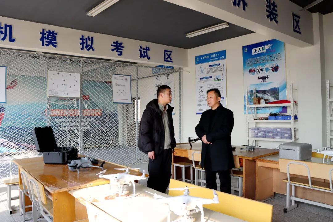 座谈会结束后,考察团一行先后深入旅游管理专业实训室和无人机应用技术专业的实训场地进行实地考察。在旅游管理专业实训区,考察团详细查看了实训设施的配置情况,对我校实训教学的规范性和实效性给予了高度评价;在无人机应用技术专业实训场地,考察团近距离观看了无人机装配、飞行操控等实操演示,对我校精准对接行业岗位需求、强化学生实践技能培养的做法表示赞赏。