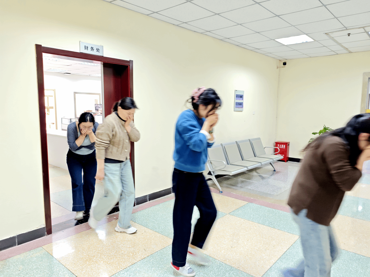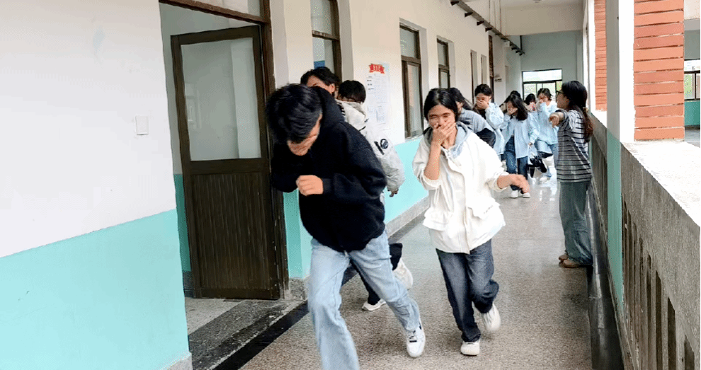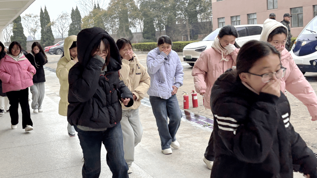本次演练实行各部门错时分批次开展模式,避免人员聚集,保障教学与办公正常运行。演练模拟教室、办公区、食堂、宿舍区等场所突发火情,现场设置模拟火源,释放模拟烟雾,火情警报响起后,各部门、各系部应急指挥小组迅速响应,现场指挥人员第一时间到位,引导参演人员用湿毛巾捂住口鼻、弯腰低姿,沿预定疏散通道快速有序撤离至安全区域,整个疏散过程规范高效,无拥挤、滞留情况,充分展现了良好的应急应变能力。