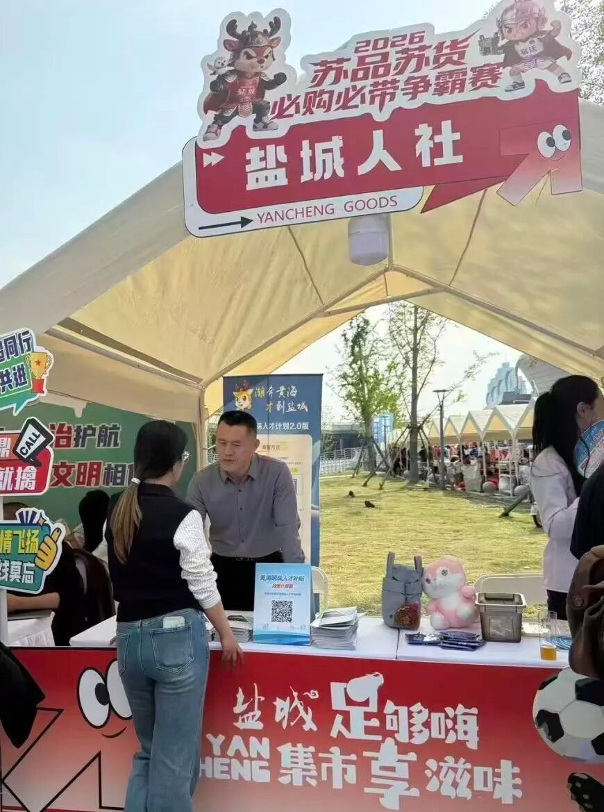 滨海以“赛事+市集”双场联动的创新模式,将足球赛场的澎湃激情与就业服务的暖心关怀深度融合,在通榆镇举办“迎苏超·促就业”园区企业进镇区专场招聘会,18家企业提供750个就业岗位供劳动者挑选,现场发放人社助企惠民政策资料1200余份。