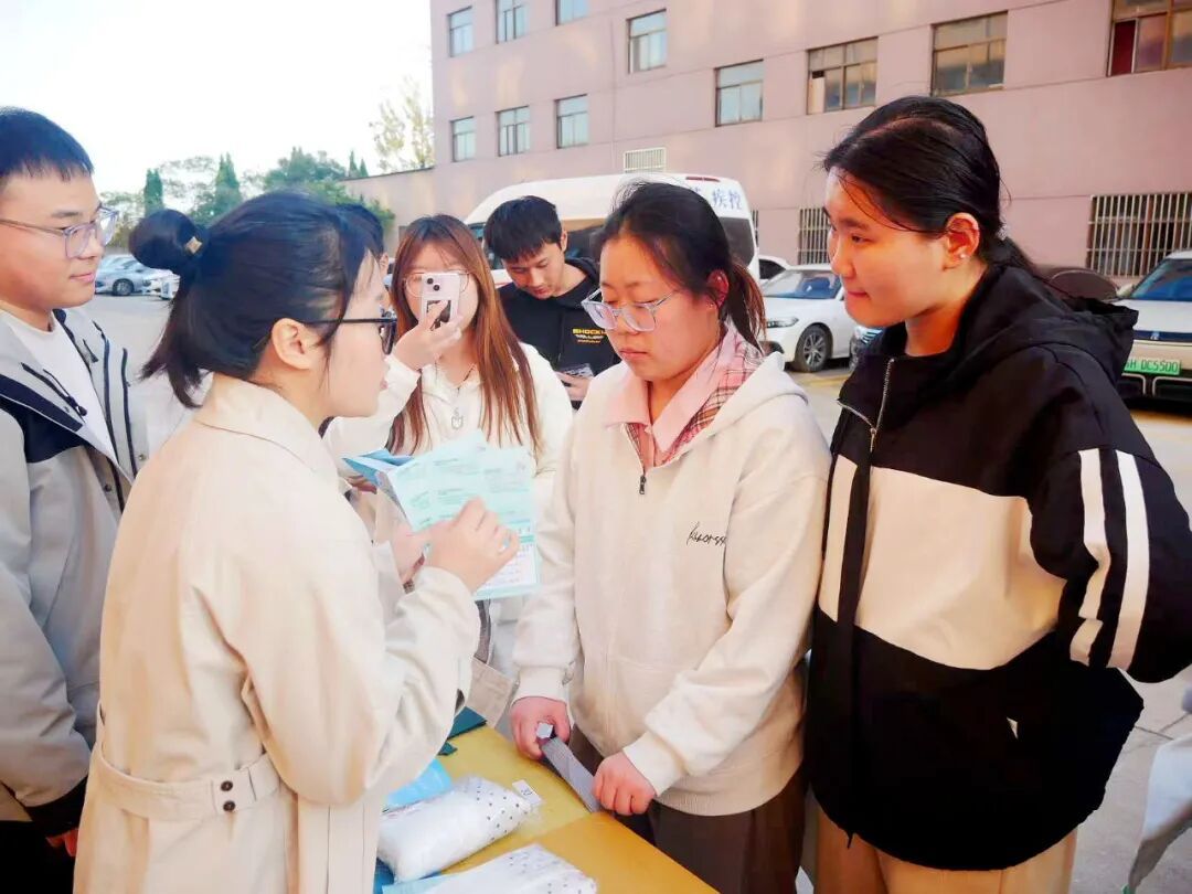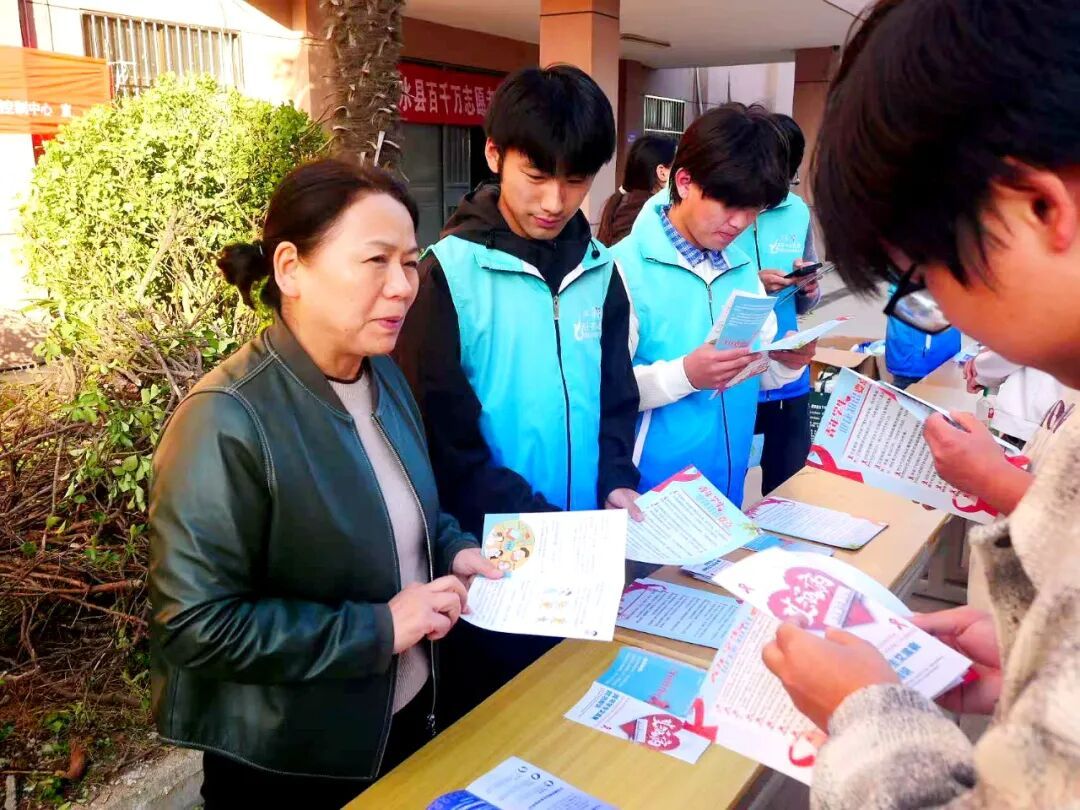 讲座开始前1小时,在中正楼设立宣传点位,由涟水县疾控的工作人员与我校志愿者共同发放科普传单、派送健康小礼品。提前传递科普信息,为讲座现场的高参与度与强互动性打下良好基础。