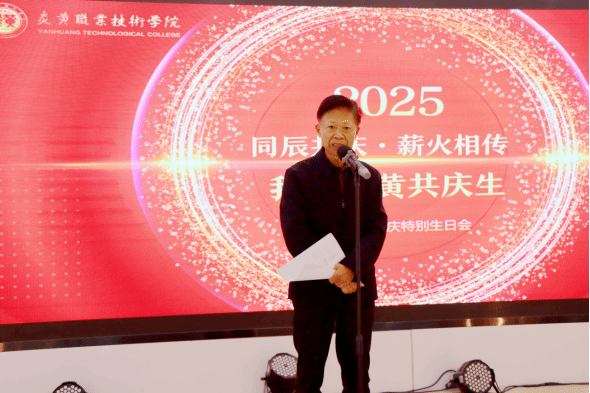 党委书记季军在这场特别生日会上致辞,他赞扬26年来炎黄人用智慧和汗水,共同铸就了学校今日的辉煌。他表示26年来的这份荣光,属于在座的每一个人,属于所有将青春和梦想融入这片热土的奋斗者。特别祝贺与校庆同一天生日的师生生日快乐,希望学生们能永远铭记这份独特的生日印记,将个人理想融入时代洪流,不负韶华,不负母校的培养,努力成为可堪大用、能担重任的栋梁之才。最后他展望未来,祝愿在座师生和炎黄的未来都更加美好。