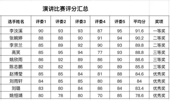 本次比赛邀请了学院在学生工作及安全管理领域的五位老师担任评委。从演讲内容、语言表达、形象风度、现场效果等多个维度,对选手进行了客观、公正的综合评定。经过严谨的计分核算,最终获奖名单正式公布:
