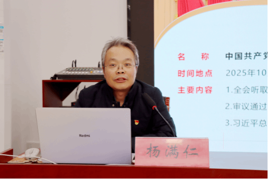 12月11日下午,我校举办学习贯彻党的二十届四中全会精神宣讲报告会。淮阴工学院教授、硕士研究生导师、社会科学处处长、苏北发展研究院执行院长杨满仁作专题报告。全体党员,中层及以上干部、思政课教师、辅导员及学生代表参加活动。