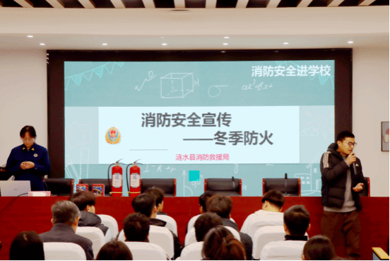 为全面普及消防安全知识,防止冬季火灾的发生,提升师生应急自救能力,1210下午,我校特别邀请县消防大队宣传科的宣传员王文颖,在中正楼阶梯教室给我校师生开展冬季防火知识讲座各部门教职工代表和各系学生代表参加讲座。