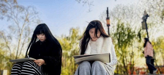 “南湖的妙处,在于建筑与水的共生交融。书院的白墙倒映在湖水中,颜色会比实体更显温润,还带着水波漾起的肌理感。”张晓莉老师在写生现场细致点拨,“画的时候要把这种虚实对比表现出来,这和我们室内设计中追求的空间延伸感异曲同工,能让画面更富层次与张力。”受此启发,学生们特意选在南湖岸边取景,画纸上不仅有南湖书院的飞檐翘角,更细致捕捉了桥洞下光影流转的微妙变化,将建筑之美与自然之韵融为一体。