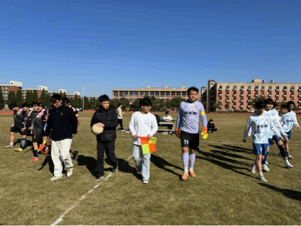 作为足球社年度特色活动,本次内部赛自10月启动以来,便得到社员们的积极响应。赛前,社团组委会精心制定赛程,划分小组循环赛、交叉淘汰赛两个阶段,配备专业裁判与后勤保障团队,确保赛事公平有序推进。赛场上,老社员们带着“最后一战”的珍重,把多年积累的技巧、默契的跑位毫无保留地展现给新伙伴——一个眼神示意传球路线,一次倒地前的奋力解围,都是他们对社团无声的嘱托。新成员们则用少年人的冲劲回应着这份传承,哪怕是第一次配合的失误,也在“学长,下次我注意!”的呼喊中,透着成长的认真。混合编队的阵容里,没有“前辈”与“新人”的距离,只有“队友”二字的重量。