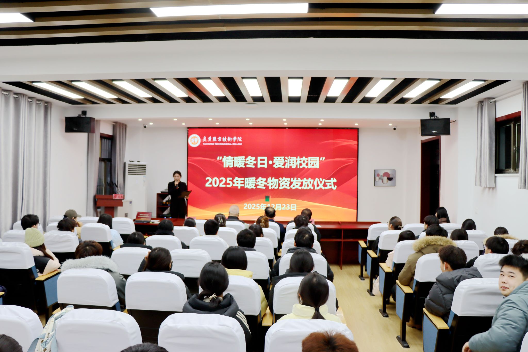 岁末天寒,暖意不减。为切实保障家庭经济困难学生温暖过冬,传递学校对学子的深切关怀与殷切期望,我校于中正楼阶梯教室开展2025年“暖冬助航”物资发放活动。校党委副书记、常务副院长孙志顶、学生工作处处长邱芳贤、学生资助中心负责人及受助学生代表共同参加了本次活动。