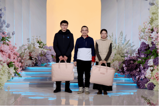 蒋维泰抽取了特等奖——水星家纺鹅绒被,2位老师抱回大奖。