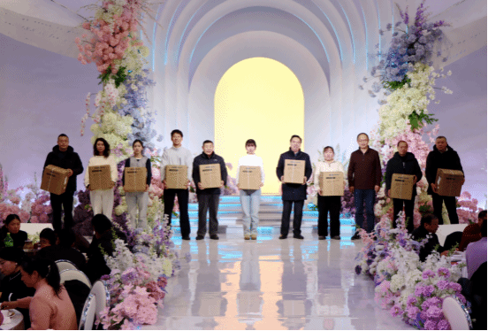 午宴时,抽奖继续进行,五等奖共有40个名额,王丽凤接过抽奖按钮,给大家送上了崭新的电热水壶。