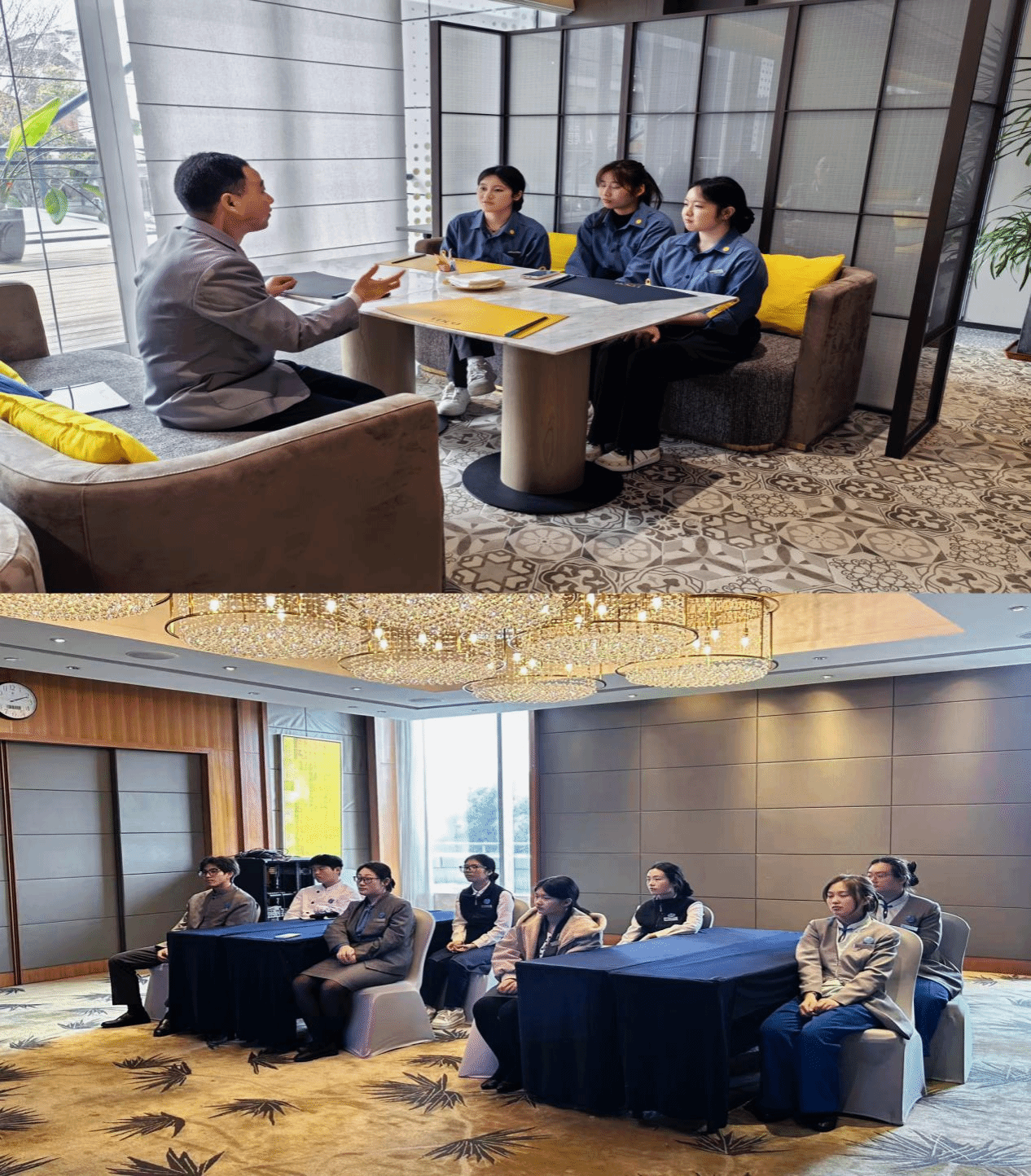 抵达酒店后,学生们迅速进入实习角色,在酒店工作人员的引导和培训中熟悉岗位流程、锤炼专业技能。同学们认真履职、积极学习,他们的态度与能力得到了实习单位领导和同事的一致认可。