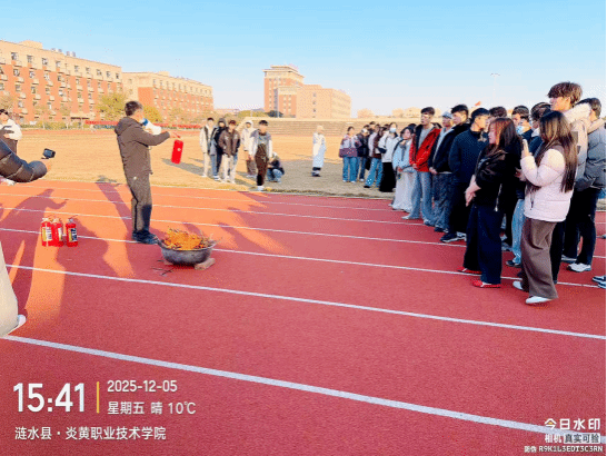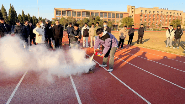 防患未“燃”,实操演练筑牢安全屏障,拔河比赛的激情尚未散去,活动的第二项重要内容——灭火器使用宣传培训随即展开。学院教官王春会为在场师生带来了一堂生动而实用的消防安全课,王教官首先讲解了校园内常见的火灾隐患、预防措施以及初期火灾扑救的重要性。随后,他现场演示了干粉灭火器的正确使用方法并清晰地概括为“提、拔、握、压”四个步骤。:提起灭火器,检查压力表是否正常:拔掉保险销:握住喷管前端,对准火焰根部:压下压把,对准火焰根部进行扫射。