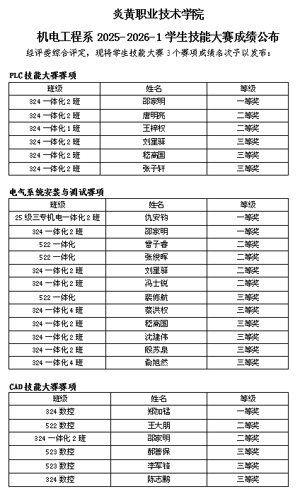 此次技能大赛不仅检验了学生的专业学习成果,更通过实战竞技有效促进了学生创新意识和工程实践能力的提升。机电工程系将持续推进“以赛促教、以赛促学”的培养模式,为培养高素质技术技能人才搭建更广阔的平台。
