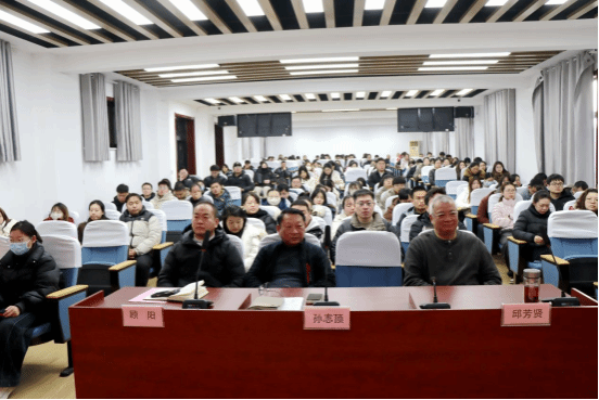 1月16日上午,炎黄职业技术学院2025-2026学年第一学期学生工作总结大会在中正楼阶梯教室隆重召开。常务副院长孙志顶、学生处处长邱芳贤、淮安市炎黄技工学校德育处主任顾阳出席会议,各系负责人、全体班导师、辅导员及学工相关人员参会,会议由学生处助理徐雅雅主持。