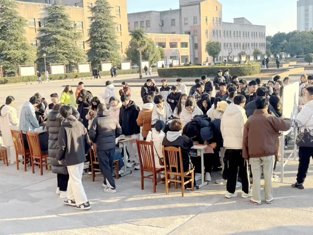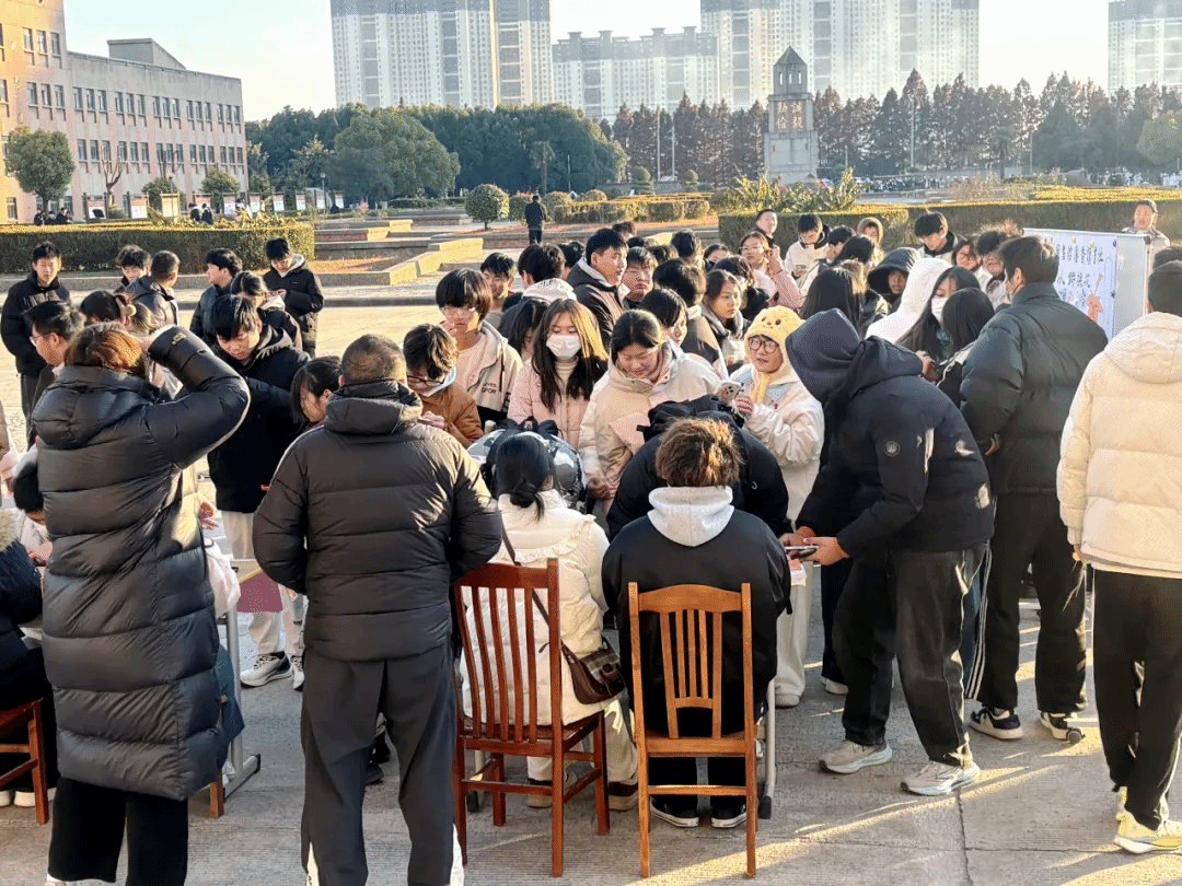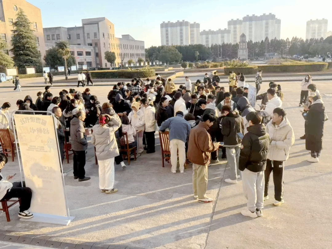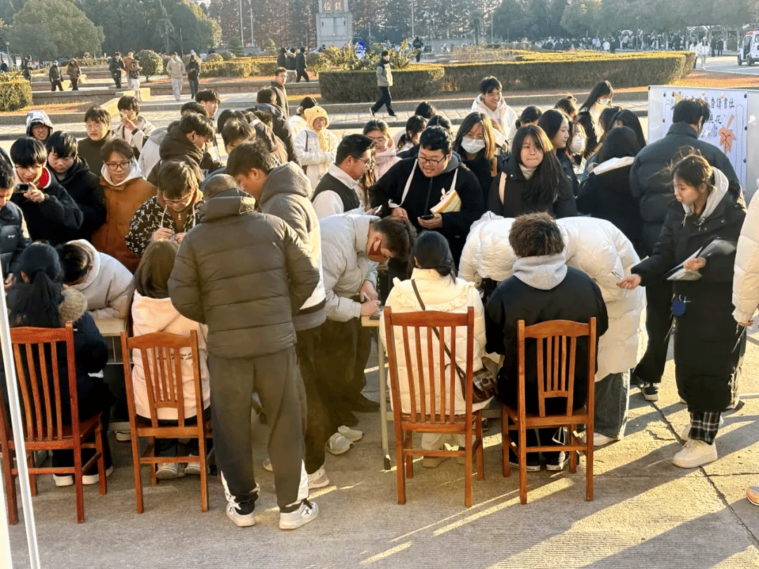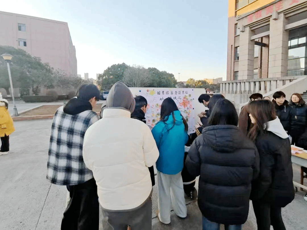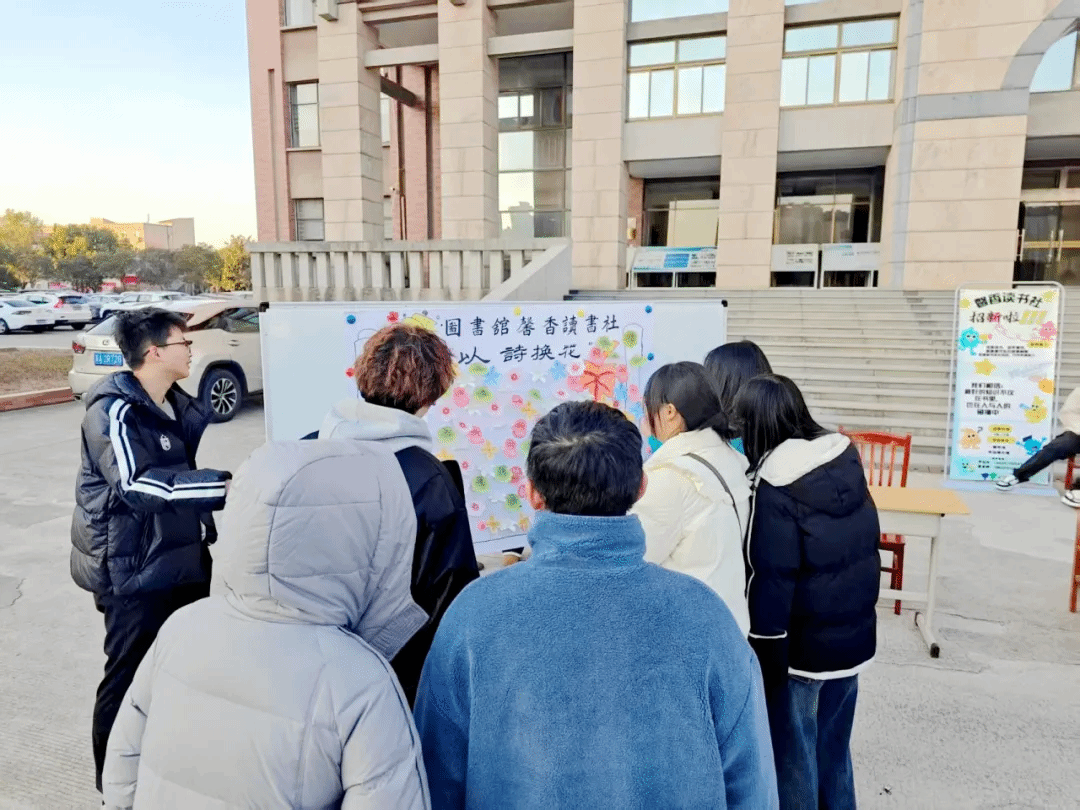 2025年12月3日下午4时在中山楼大门前,图书馆馨香读书社“以诗换花”主题活动温馨启幕,吸引全校师生踊跃参与。