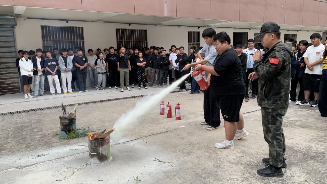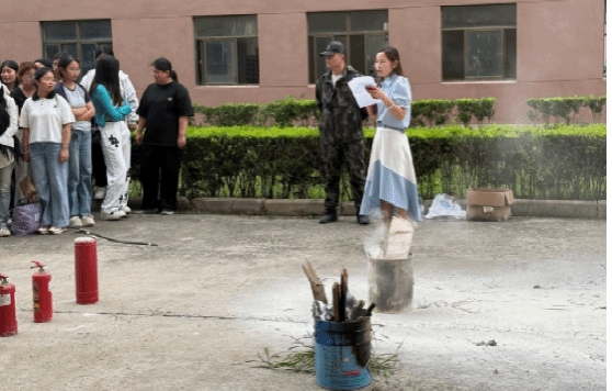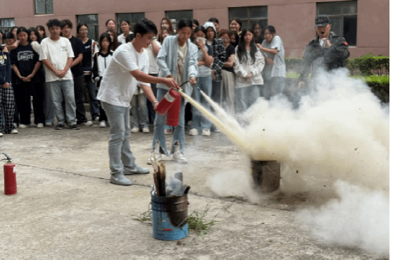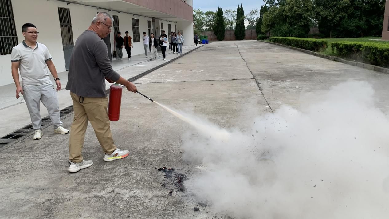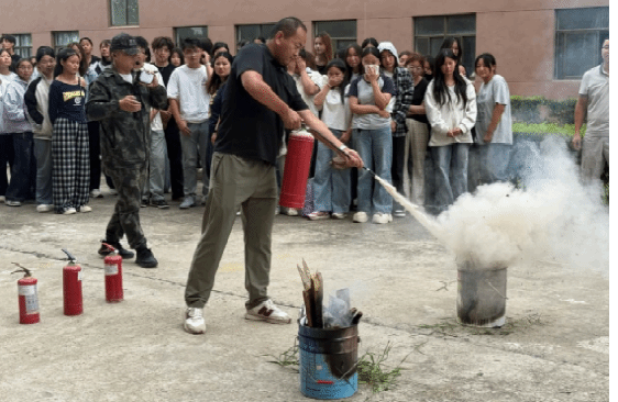 疏散结束后,随即进入消防技能实操环节。专业教官结合模拟火灾场景,详细演示灭火器操作流程,重点强调 “上风向站位、对准火焰根部喷射” 等关键要点。随后,师生代表依次上前实操,教官一对一纠正动作偏差,确保每位参与者都能熟练掌握操作技巧,真正将 “救命技能” 学到手。