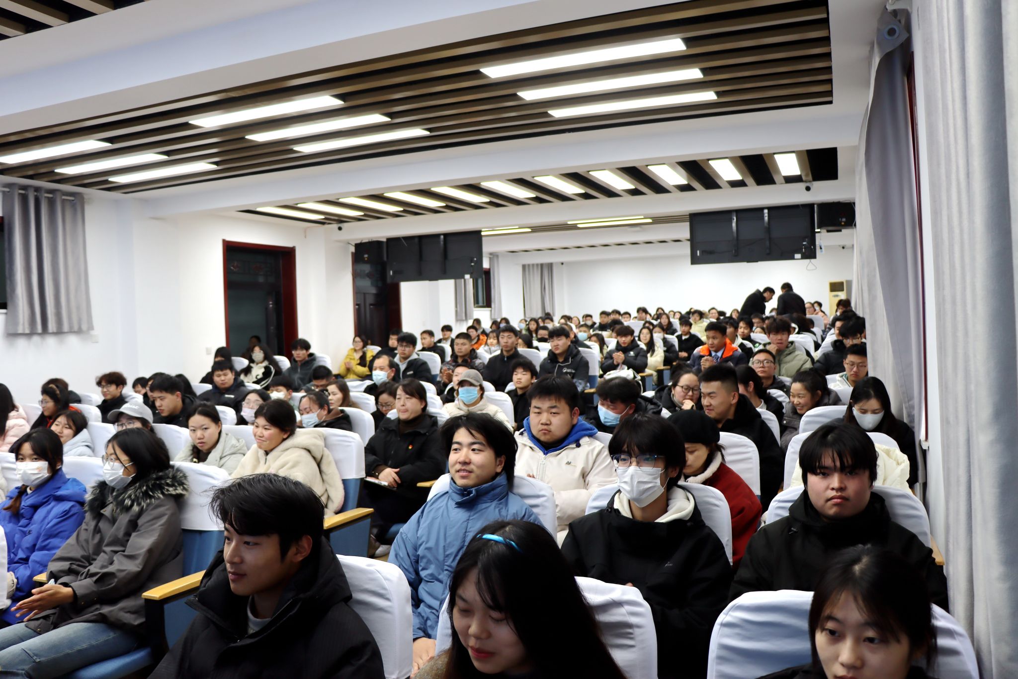 报告会上,杨满仁以《奋力开创中国式现代化建设新局面》为题,围绕习近平总书记在党的二十届四中全会上的重要讲话精神和全会《建议》,从重大成就、重大意义、形势判断、核心要义、贯彻落实五个维度对全会精神进行了系统阐释和深入解读。宣讲报告全面梳理了“十四五”时期我国经济社会发展的重大成就,深刻阐释了全会战略抉择的时代价值,围绕“十五五”时期我国发展环境基本特征进行了形势分析,深入解码了中国式现代化的“十五五”行动纲领。报告从历史与现实、理论与实践相结合的宏大视角,系统阐释了党的二十届四中全会的重大部署,既有理论层面的深刻剖析,又有实践层面的路径指引,还以学生们的身边事为引证,旁征博引、娓娓道来,高屋建瓴、内涵丰富、逻辑严谨、论述精辟,非常精彩。