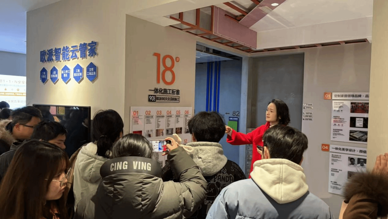 12月9日,阳光轻柔地洒在欧派家具店铺的玻璃橱窗上,折射出璀璨光芒。炎黄职业技术学院设计系室内设计专业324设计班与522设计班的全体同学,怀揣着对室内设计的无限憧憬,在老师带领下走进店内,开启了一场由欧派店长亲自引领的室内设计过程探索之旅。