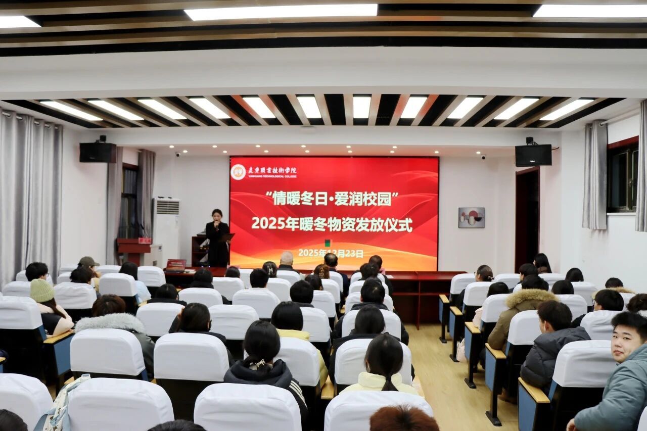 岁末天寒,暖意不减。为切实保障家庭经济困难学生温暖过冬,传递学校对学子的深切关怀与殷切期望,我校于中正楼阶梯教室开展2025年“暖冬助航”物资发放活动。校党委副书记、常务副院长孙志顶、学生工作处处长邱芳贤、学生资助中心负责人及受助学生代表共同参加了本次活动。