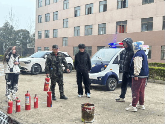 室外实操区,安保教官现场演示灭火器“提、拔、握、压”规范操作流程,详细讲解灭火器适用场景、注意事项及初期火情处置技巧。随后,师生们逐一上手实操,近距离体验灭火操作,在实战中掌握了核心消防技能,真正实现“懂理论、会操作”。