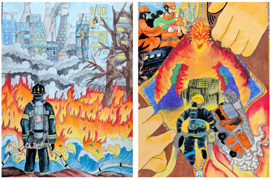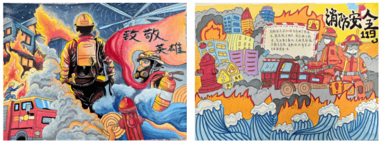 本次比赛面向系内全体学生,得到了同学们的积极响应和热情参与。活动期间,共收到参赛作品百余幅。同学们充分发挥专业特长与创意巧思,围绕火灾预防、火场逃生、消防器材识别、致敬消防英雄等主题,精心构思,用心绘制。一幅幅作品色彩鲜明、图文并茂、内容丰富,既严谨准确地传达了消防安全知识要点,又充满了童趣与艺术感染力,充分展现了幼儿教育专业学生扎实的美术功底、创新的教学设计能力以及对儿童安全教育内容的深度理解。