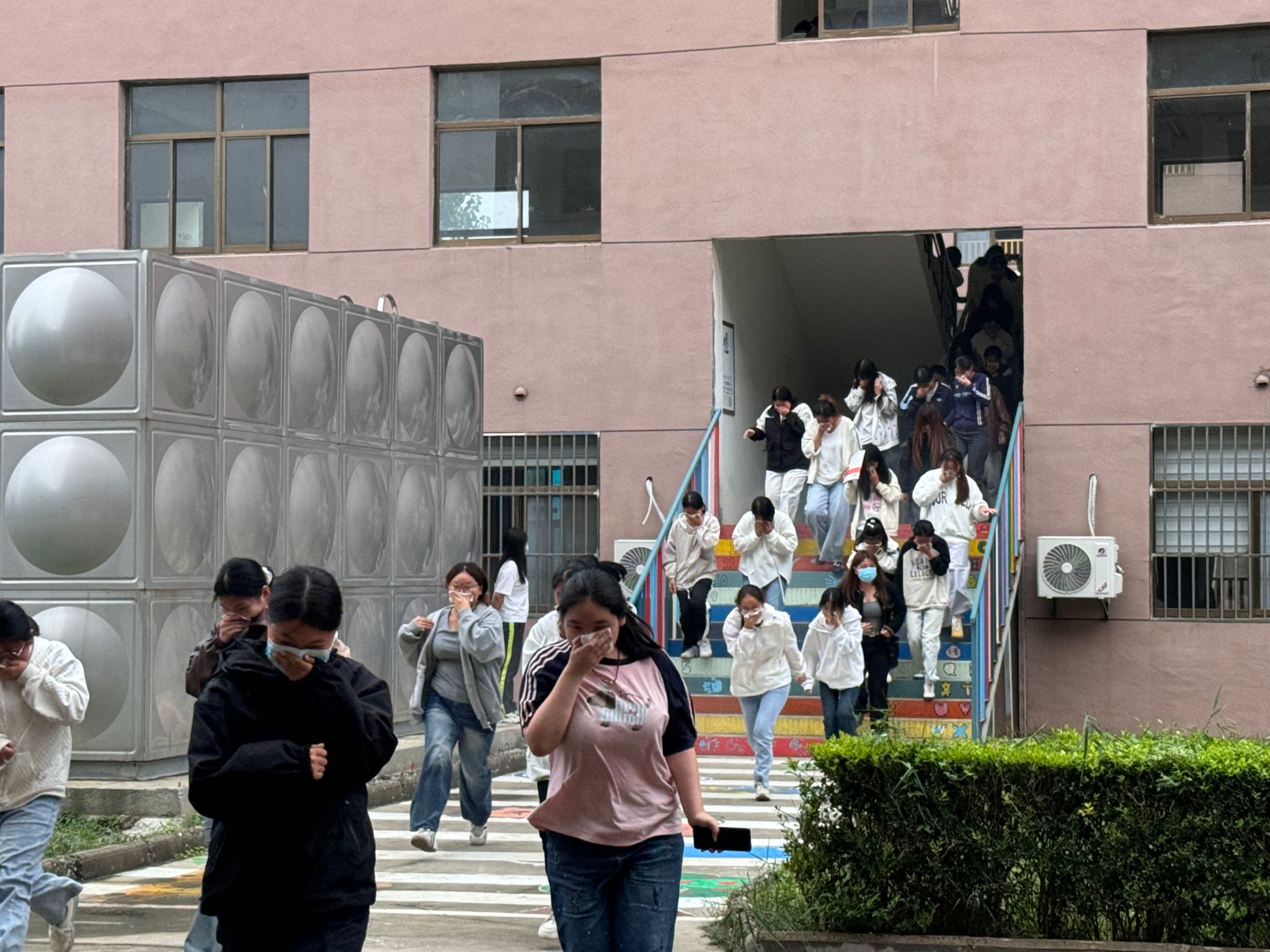 下午4点,随着警报声骤然响起,演练正式开始!同学们在老师的带领下迅速起身,弯腰护头,沿着既定路线有序撤离。整个过程紧张却不慌乱,大家互相提醒,配合默契。几分钟后,全体师生安全抵达指定集合点,各班主任立即清点人数并上报,做到“不漏一人”。